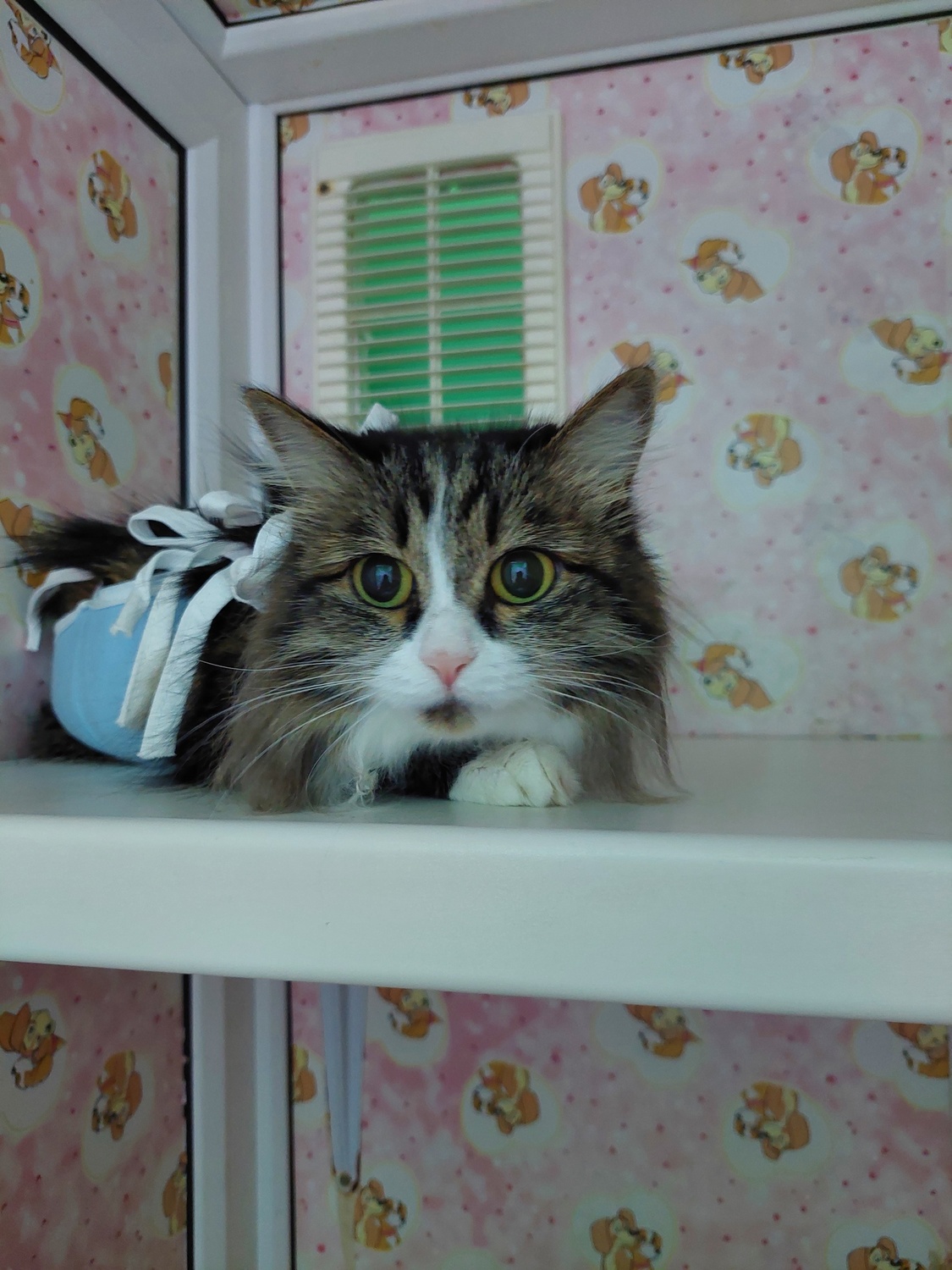 - Убедитесь, что кошка не снимает попону. Если есть попытки снять ее, то надеть дополнительно воротник.